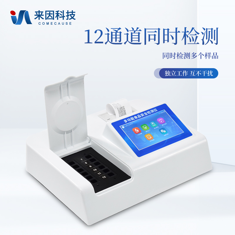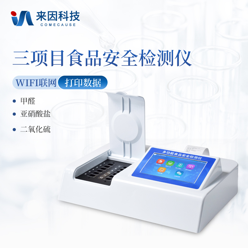 可快速检测各类食品中的甲醛、二氧化硫、亚硝酸盐的含量,仪器预留其他项目检测程序和端口,根据日后需求可方便的自主增加检测项目。