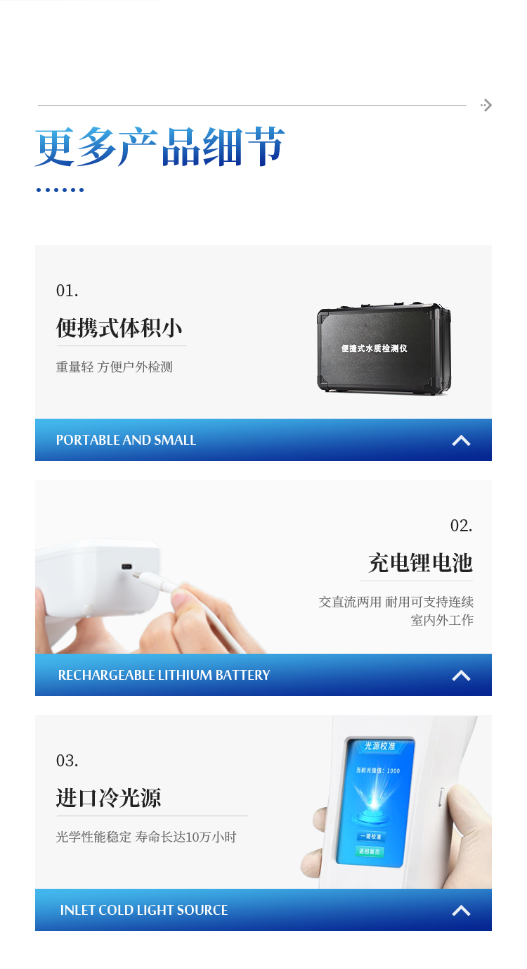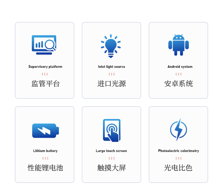 | 21 | 色度 | 5~200度 | GB11903-89波长范围:340~800nm 测量方式:光电比色 重复性:<0.5% 稳定性:<0.5% 波长选择:自动 操作系统:安卓智能操作系统 显示屏幕:3.5寸彩色液晶触摸屏 灵敏度(吸光度):0.001 使用环境:温度0~50℃,湿度0~90% 数据存储:80000条以上 通讯:Type-C、WIFI、热点、蓝牙 电池:5600mAh锂电池 连续工作时间:8小时 供电电压:5V/DC直流 尺寸:180mm*80mm*70mm 重量:700g 支持语言:简体中文或英文 |