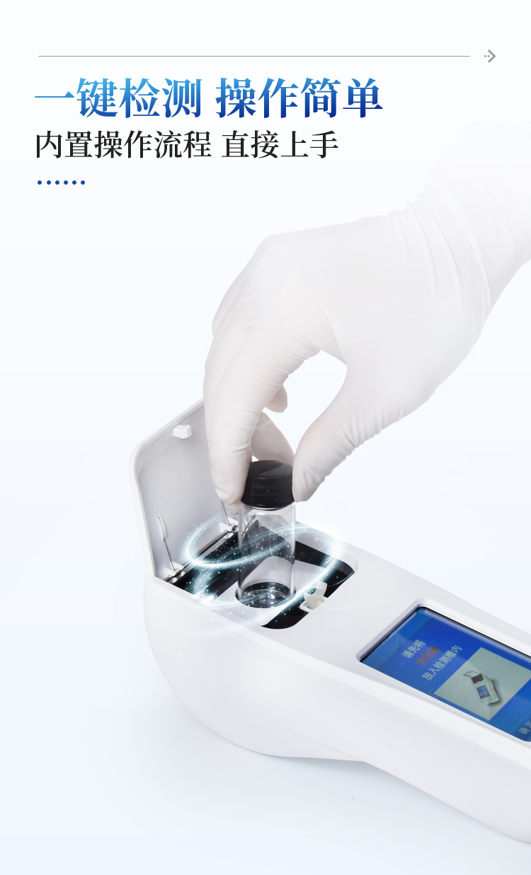 简要描述: 水厂用水质检测仪IN-SC8是一款适用于工业污水、水产养殖、河流监测、游泳场馆等领域的检测仪,配合快速显色检测试剂,可“快速、简单、准确、稳定”进行测量,拥有精美的外观造型,简单的操作界面,准确的检测系统,帮助用户获得精细的数据,可更准确、有效的分析水体状况。