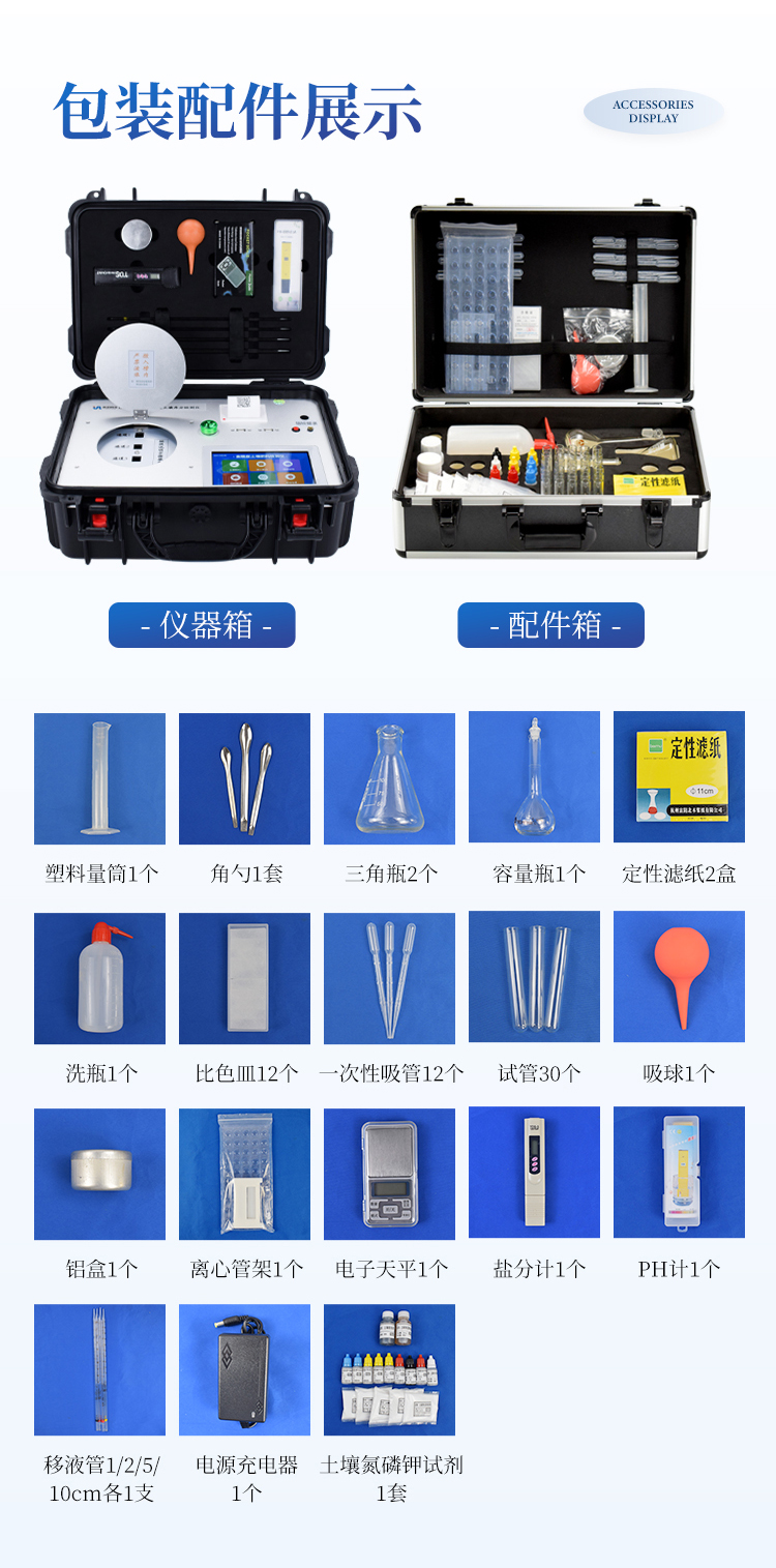 检测速度:在正常熟练程度下,测土壤铵态氮、磷、钾三项要20分钟(含土样前处理及药剂准备),微量元素单项检测需20分钟左右。