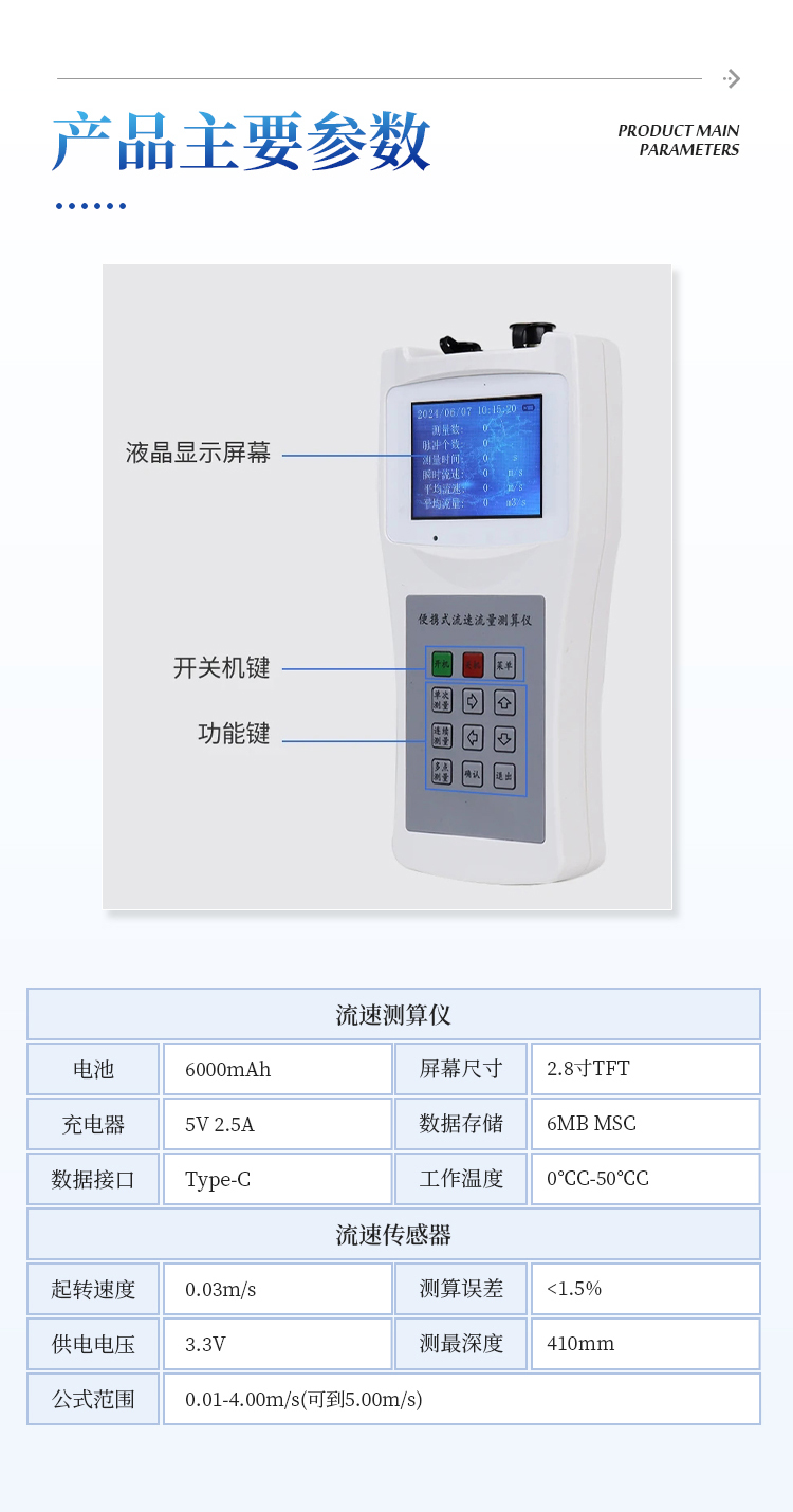 LS300-B型便携式流速流量仪(简称便携式流速仪)是专门为水文站、厂矿、环保监测站、农田排灌、水文地质调查等部门在野外进行明渠流速流量测量而研制的。