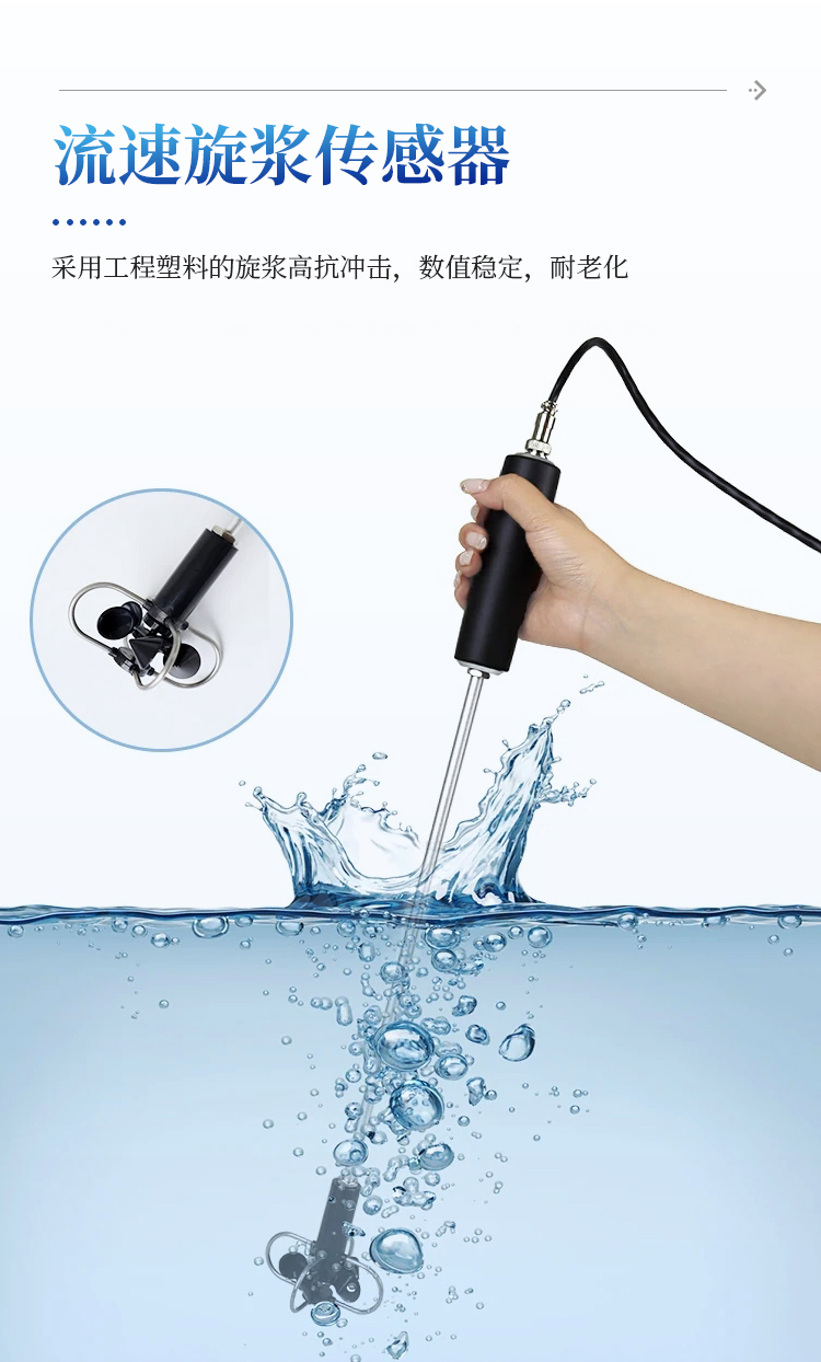 LS300-B型便携式流速流量仪可搭配流速传感器使用,该传感器旋浆螺旋角、螺距、制作工艺和材料等分别进行了重新设计。测量明渠流速流量等参数。